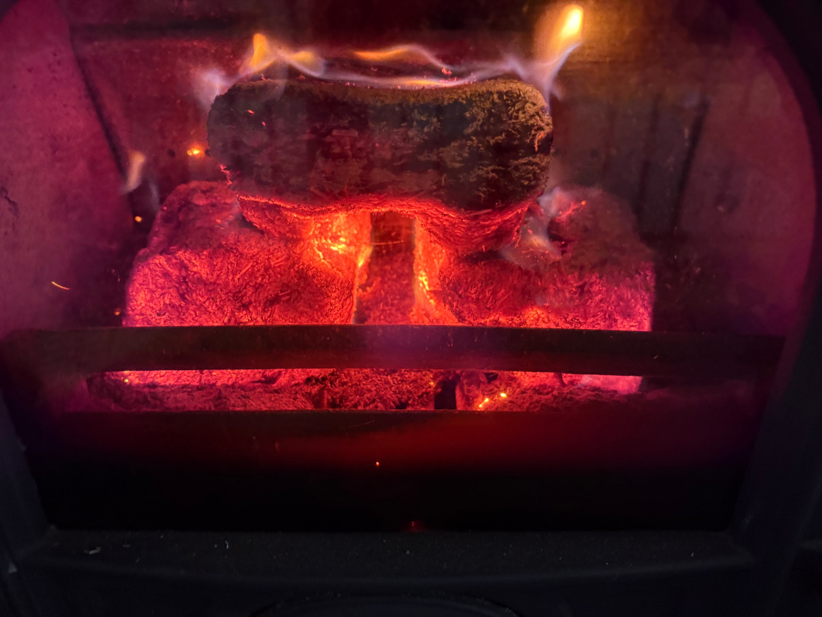 They have a lot of info on their website about how many killawatt hours each different type of log gives out, and they also sell plain chopped tree so you can see how they compare if youre into numbers and spreadsheets like my hubby. Once he had seen the numbers, and how easy to light and long they burn he was a convert too. He’s actually more evangelical about them than I am. I think my fvourite product might be the night bricks, I chuck three in about 5pm and the embers are still glowing when I empy it at 7am the next morning-when our energy bill is sky high and living in the frozen north thats a product I would struggle to live without in the middle of winter!